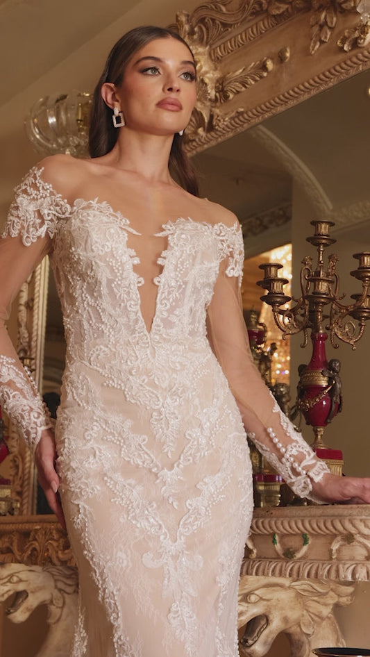 Elegant Lace Wedding Dress with Illusion Sleeves_LD A1022